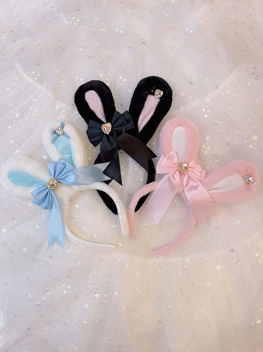 Sweetheart Princess Plush Rabbit Ears Diamond Heart Winter Hairband Headband