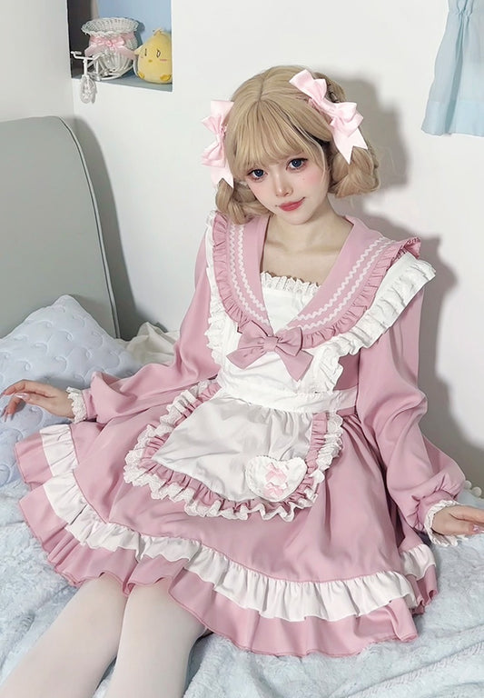 Cute Pink Black Lolita Cosplay Ruffle Maid Dress