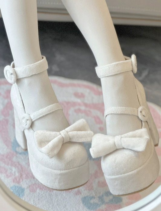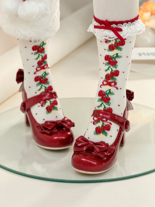 Love Letter Rose Heart Knot Lolita Black White Pink Blue Red High Heels Shoes
