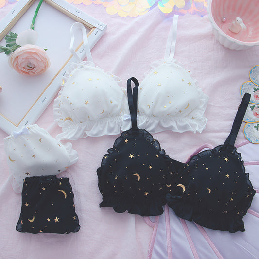Sweet Soft Angel Moonlight Lace Ribbon Bow Lingerie Bra Panties Set