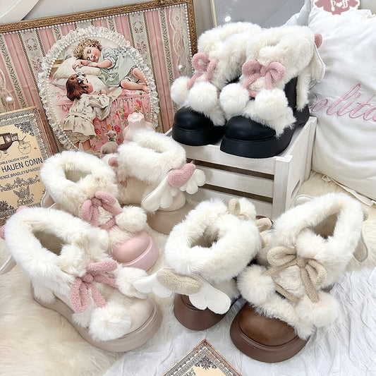 Puffy Sheep Duidui Bear Winter Beige Pink Brown Snow Boots