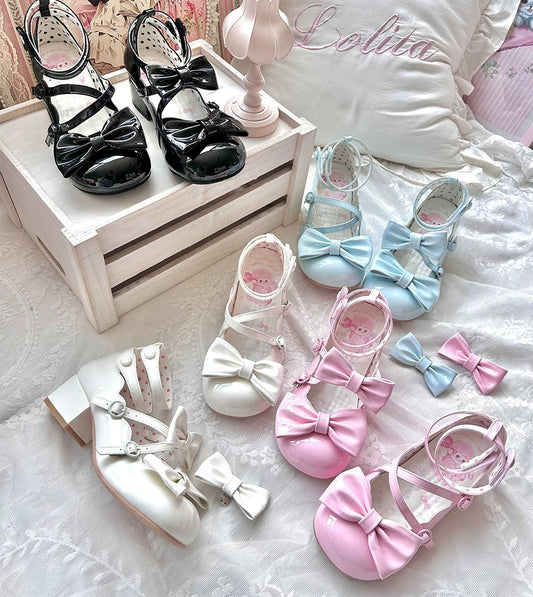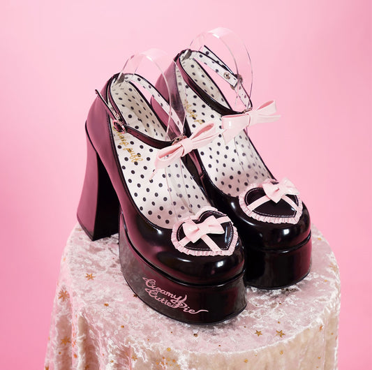 Puffy Sheep Heart Cross Bow Classic Platform Bow High Heels Shoes