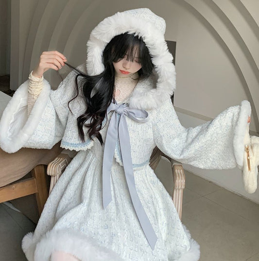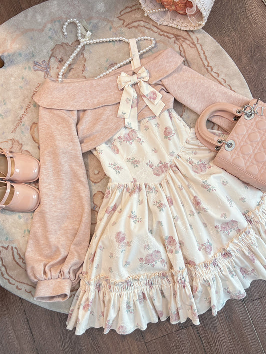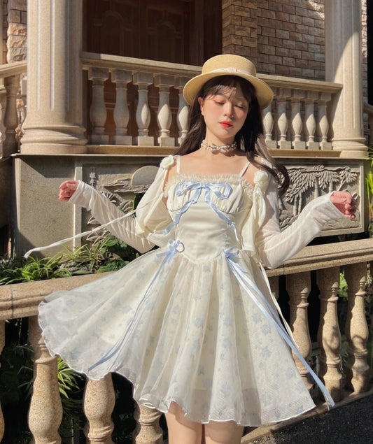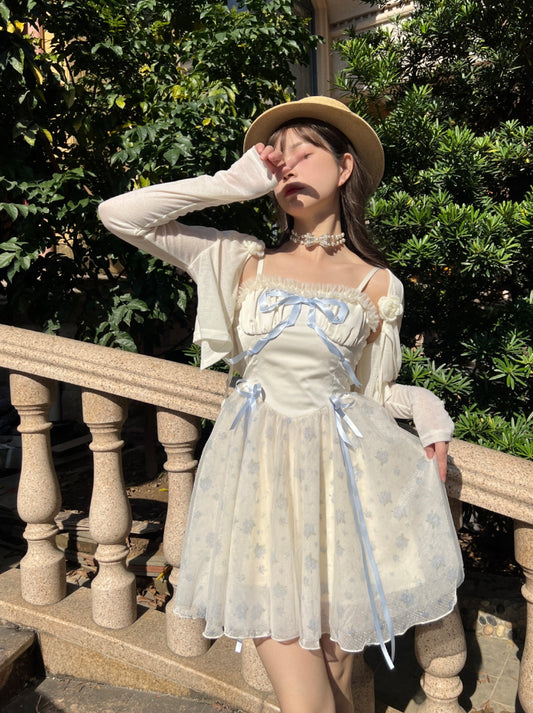 Ruellia Rose Floral Princess Pink & Blue Strap Dress Jacket Two Piece Set