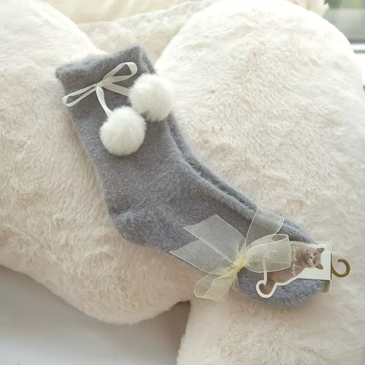 Sweet Cute Coquette Pompom Balls Fuzzy Socks