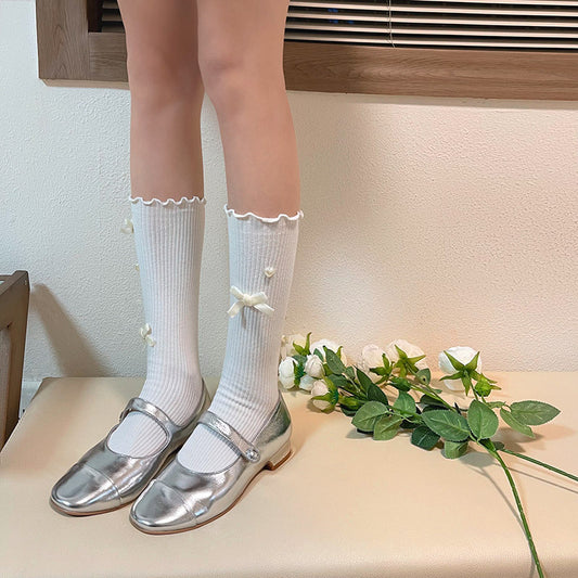 Sweet Balletcore Coquette Ribbon Bow Pearl Stockings