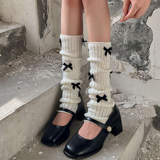 Autumn Winter Sweet Lolita Coquette Bow Knit Socks Leg Warmers