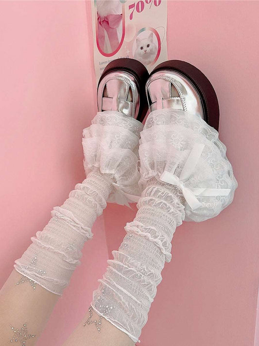 Coquette EGL Ruffled Lace White Bow Arm Warmers Leg Warmers