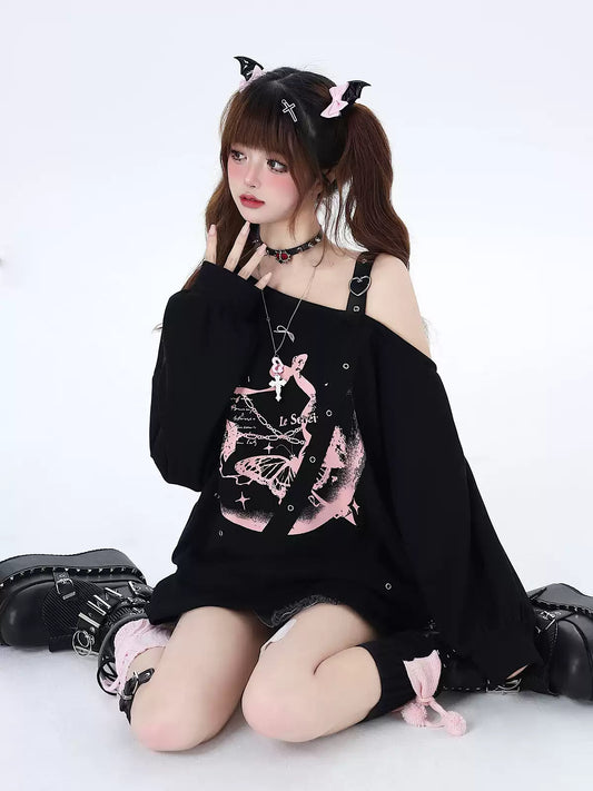 Crazy Girl Butterfly Effect Strap Pink Black Sweatshirt