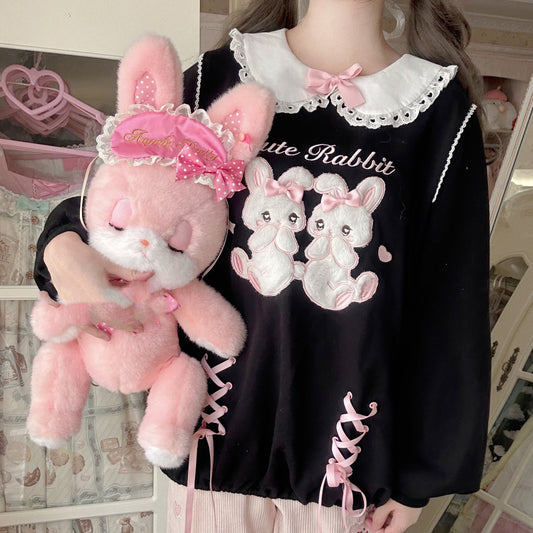 EGL Coquette Bow Ribbon Teddy Bear & Gemini Rabbit Pink Yellow Black Sweatshirt
