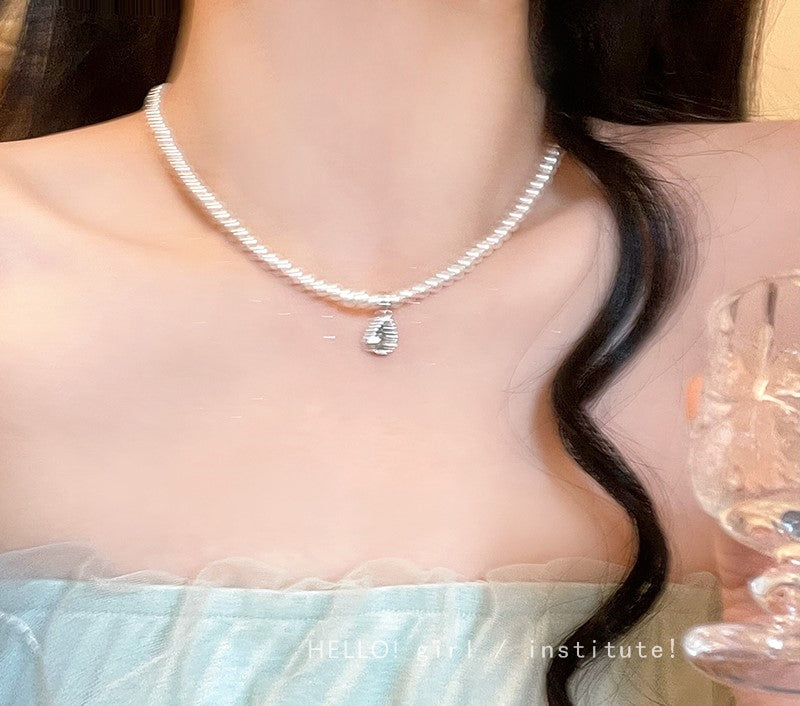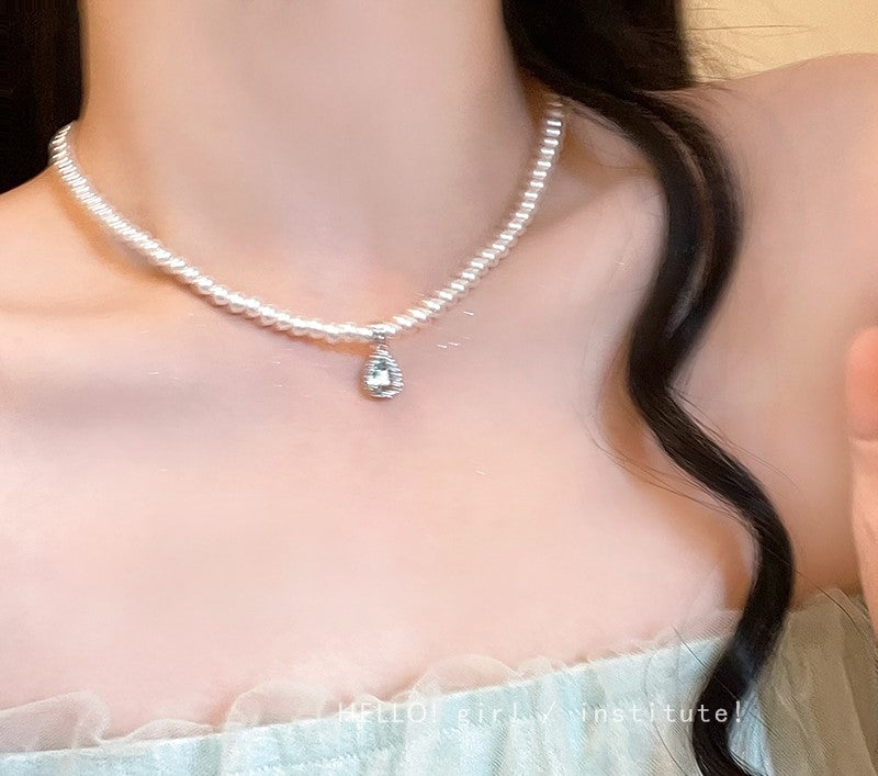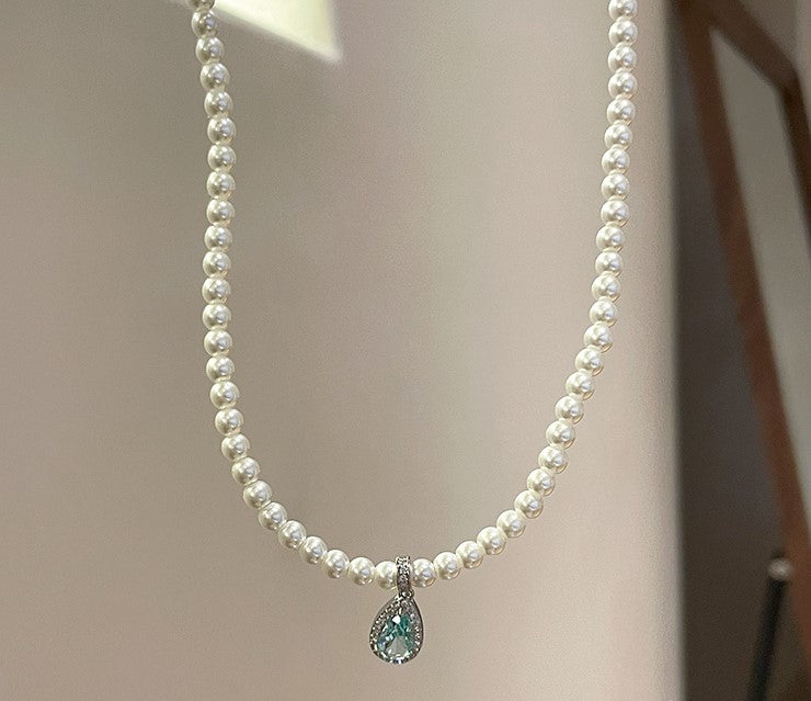 Aquamarine Blue Tear Drop Pearl Pendant Necklace
