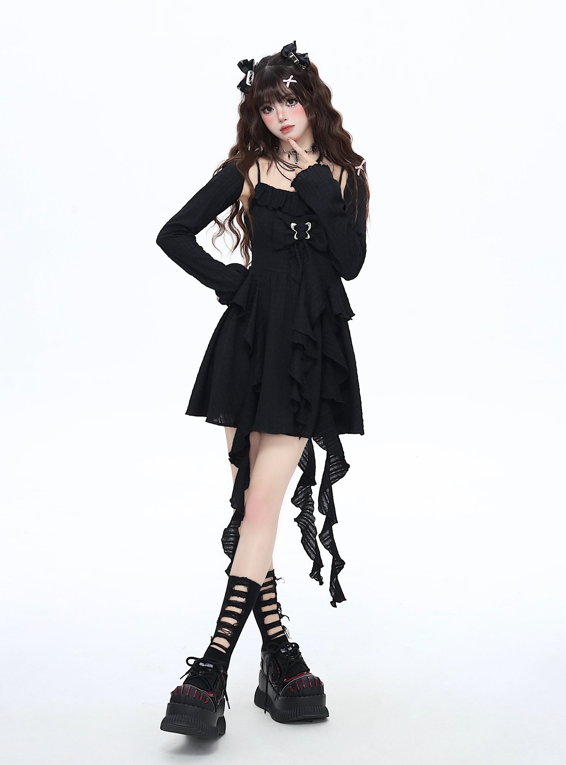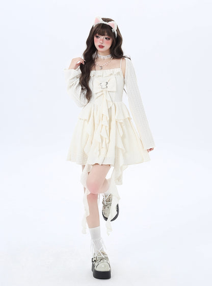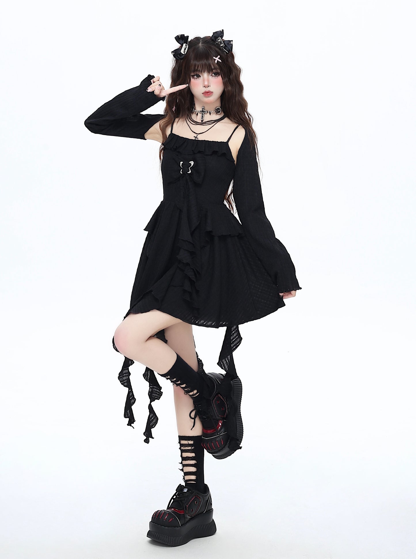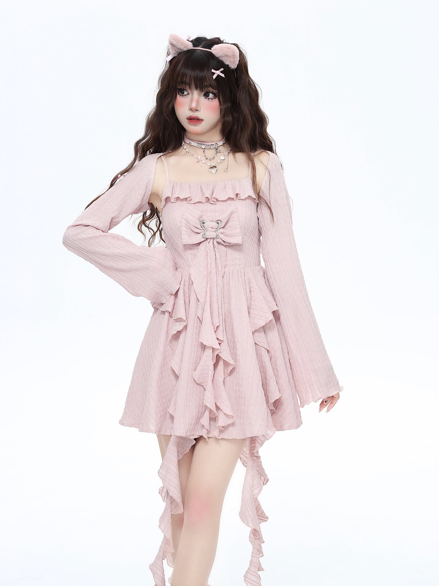 Crazy Girl Endless Summer Black Pink Cream Purple Dress Cardigan Shrug Two Piece Set