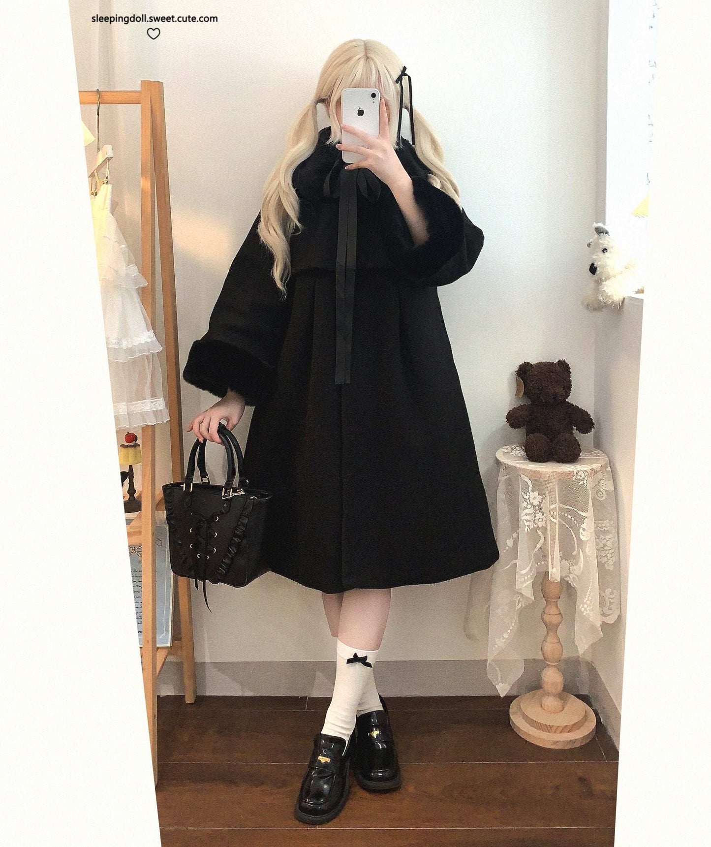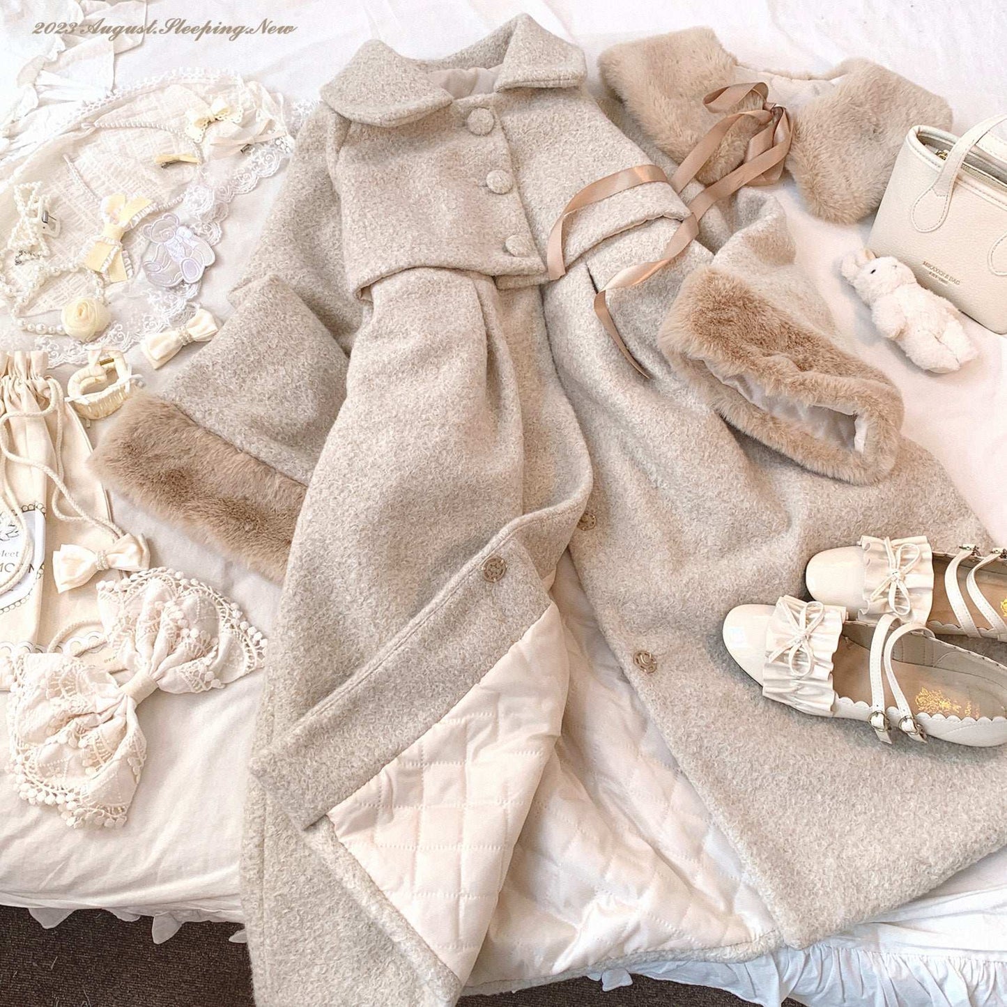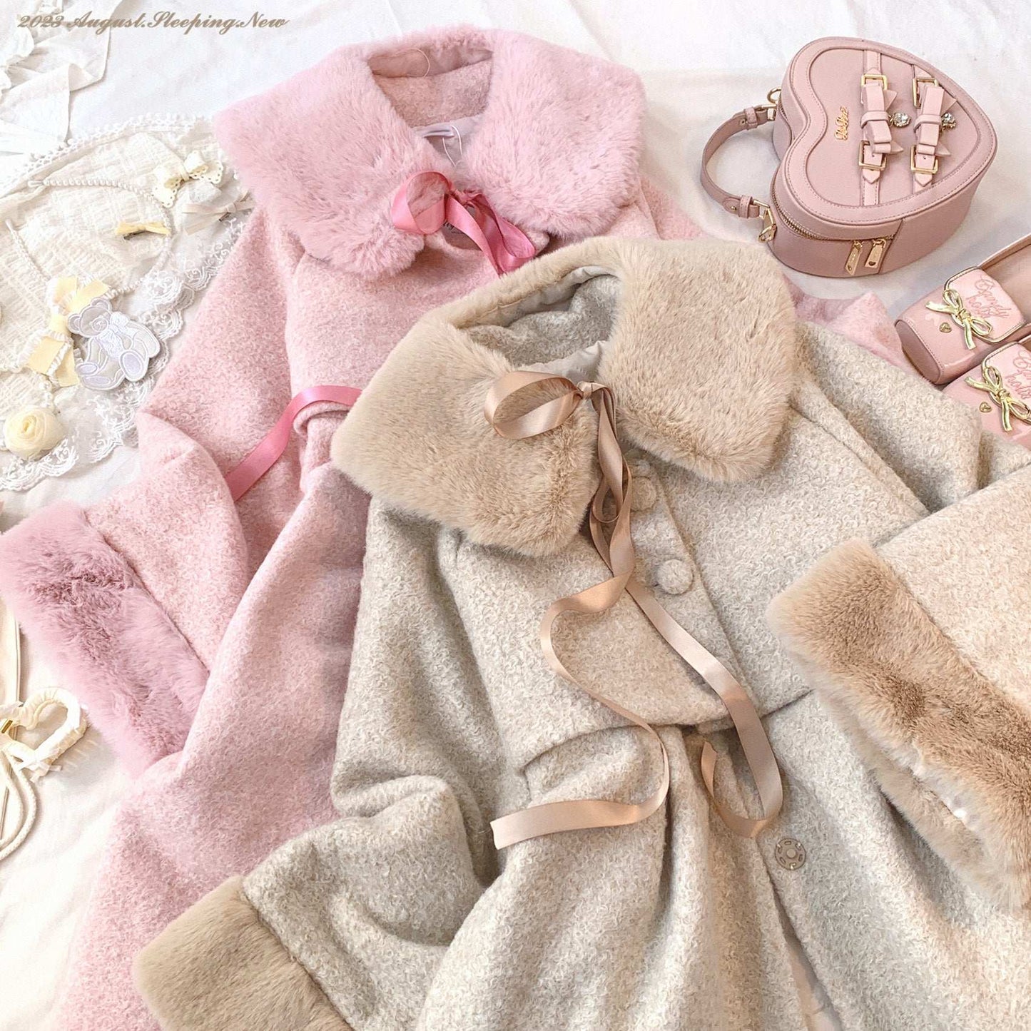 Dormir Doll Lady Retro Pink Beige Black Overcoat