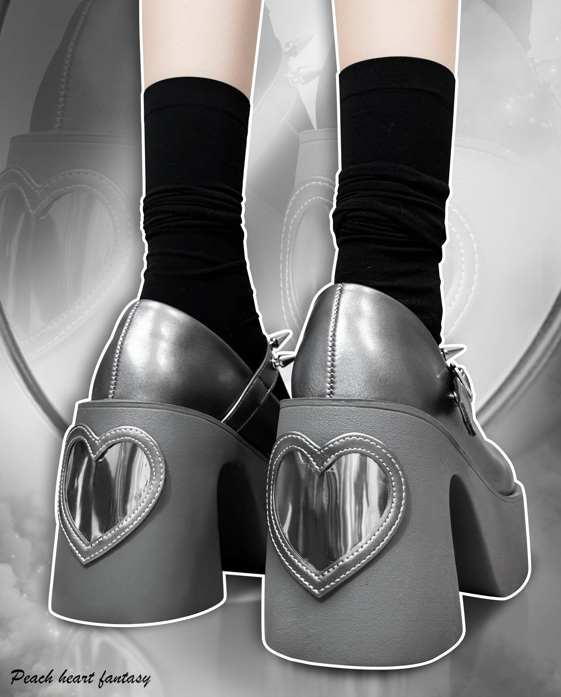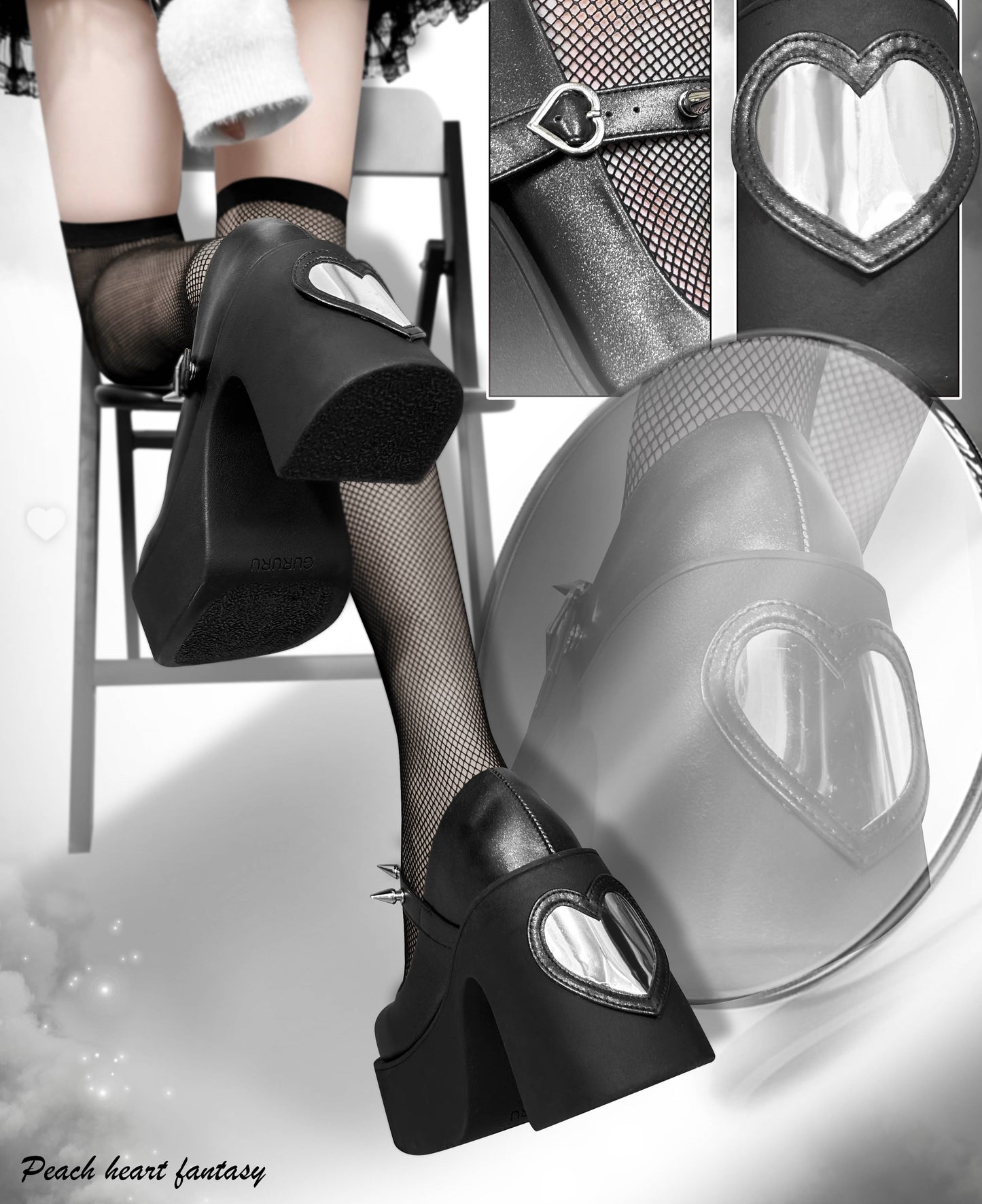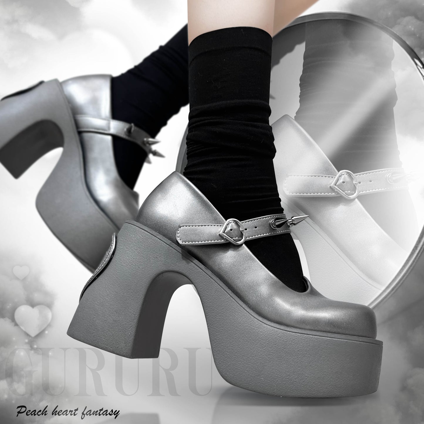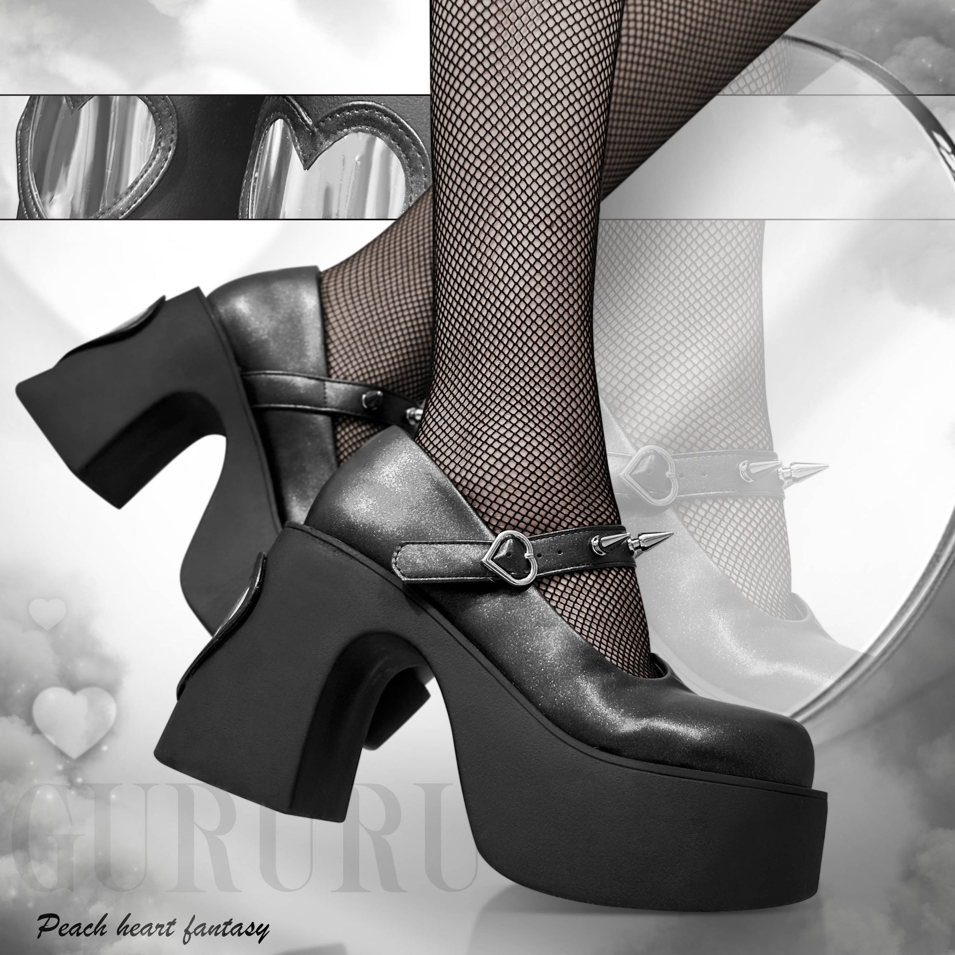 Gururu Heart Fantasy Punk Goth Y2K Mary Jane Platform High Heels Shoes