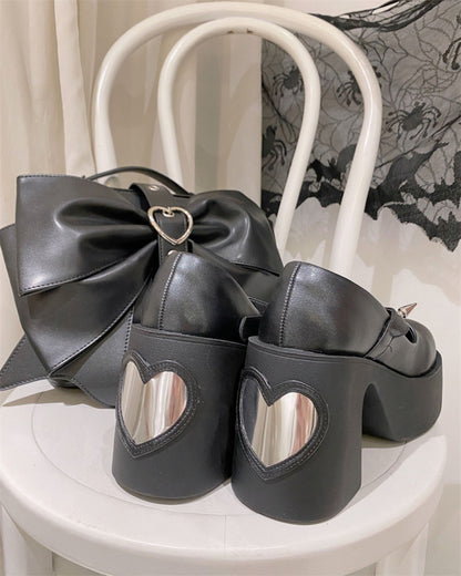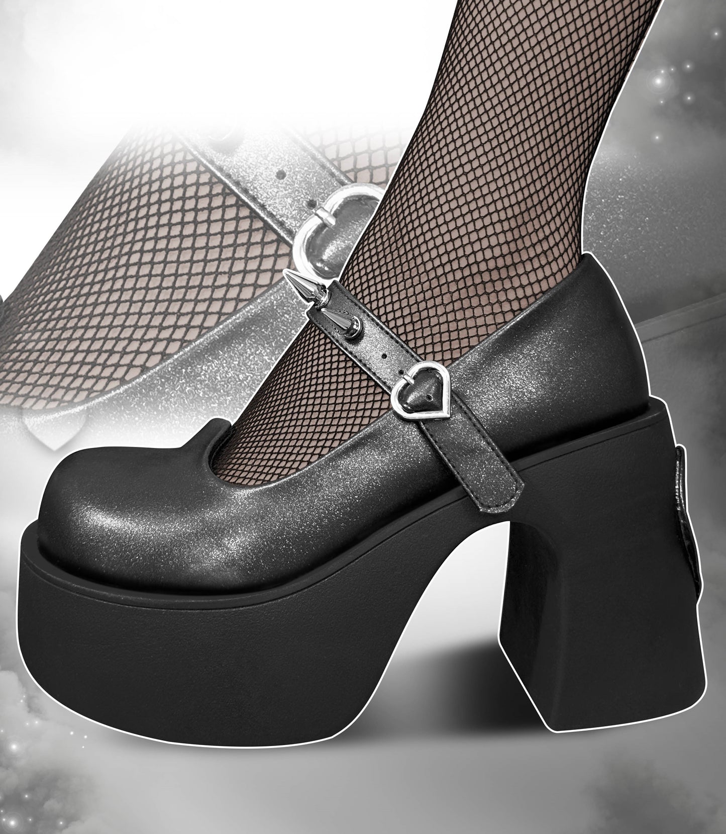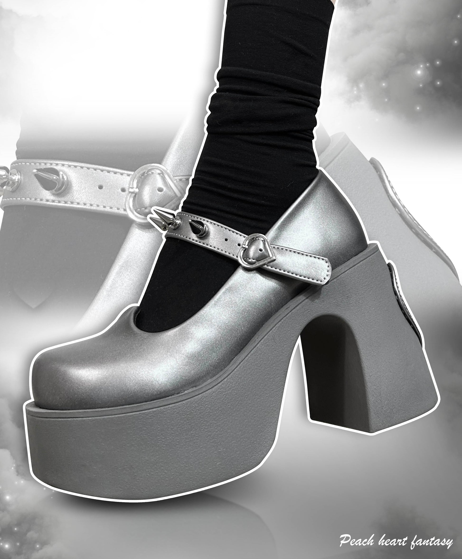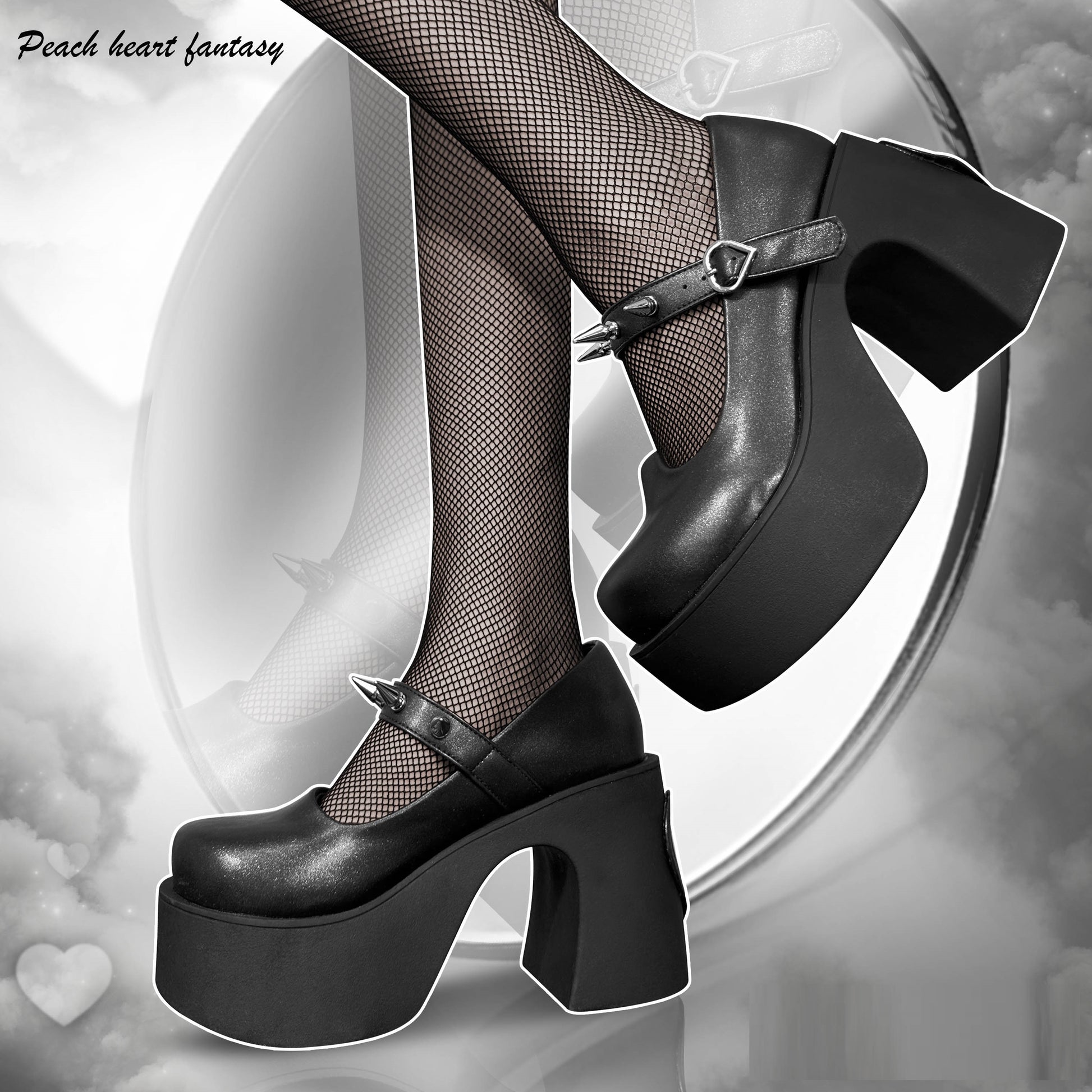 Gururu Heart Fantasy Punk Goth Y2K Mary Jane Platform High Heels Shoes