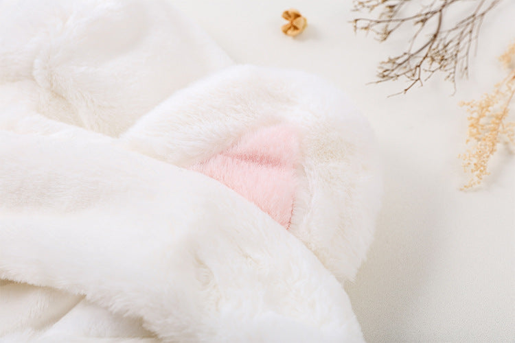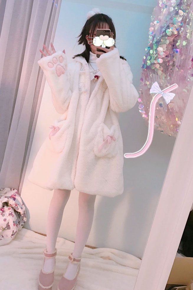 Soft Plush Velvet Cat Ear Pink Paw White Coat