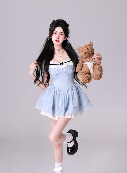 Kiki Star First Love Summer Blue Cream Puff Sleeve Dress