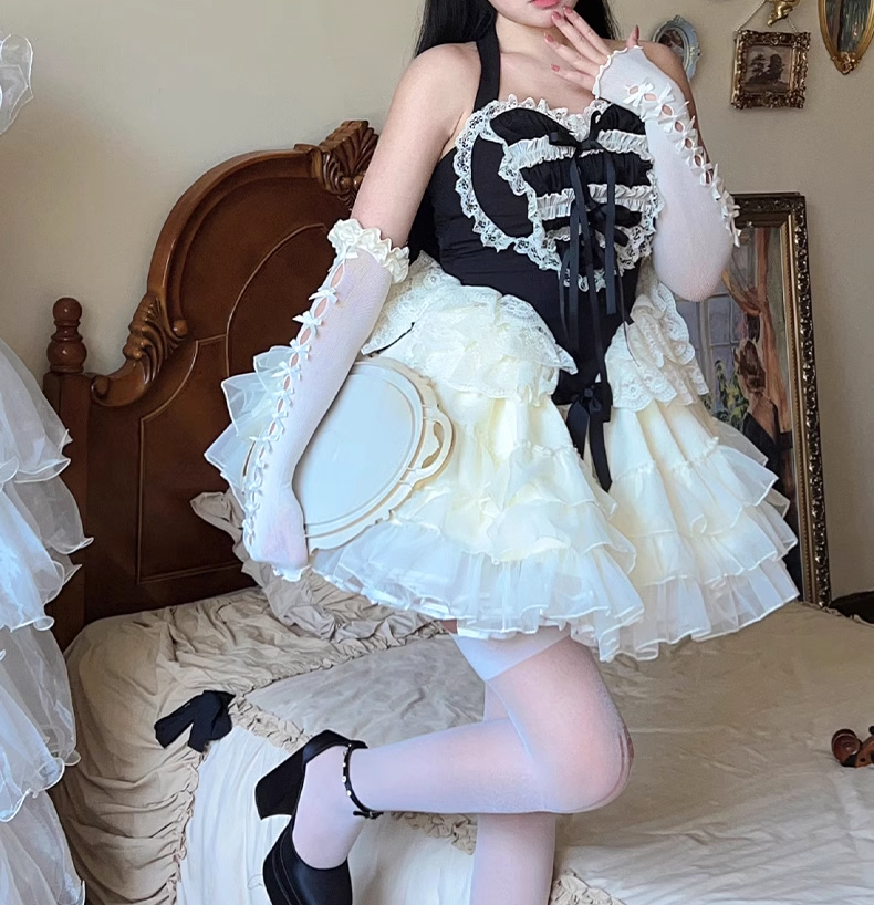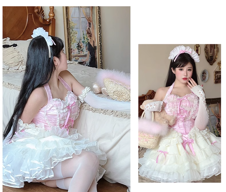 Diamond Sweetheart Love Maid Lace Hearts Black Pink Strap Tulle Dress