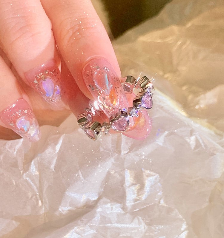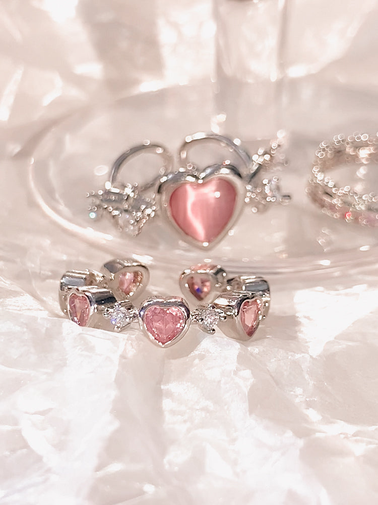 Luxury Princess Pink Silver Diamond Love Thorn Ring