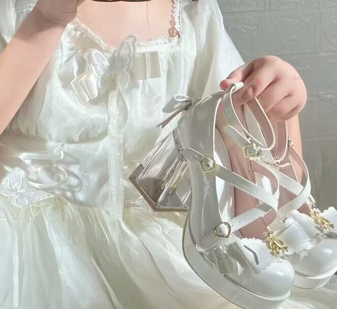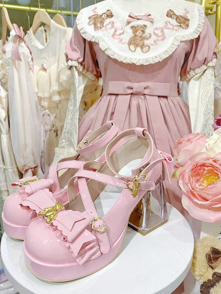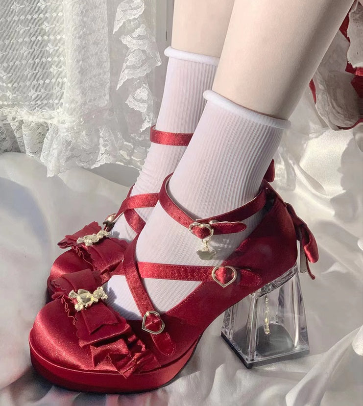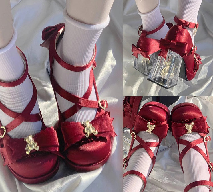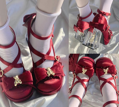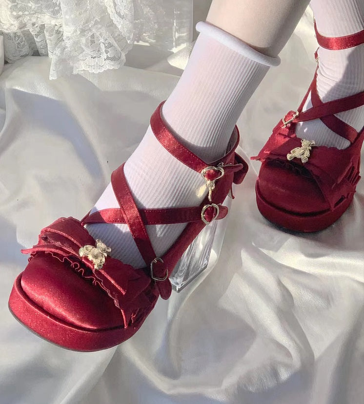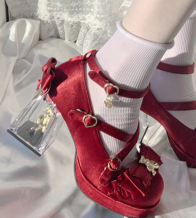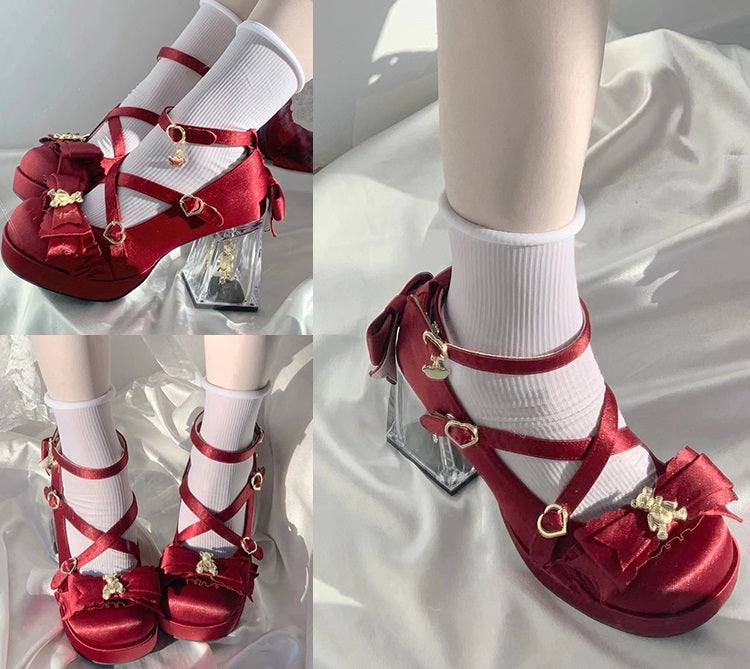 Moeka Chan Lolita Red Dream Bear Transparent Glass High Heels Shoes