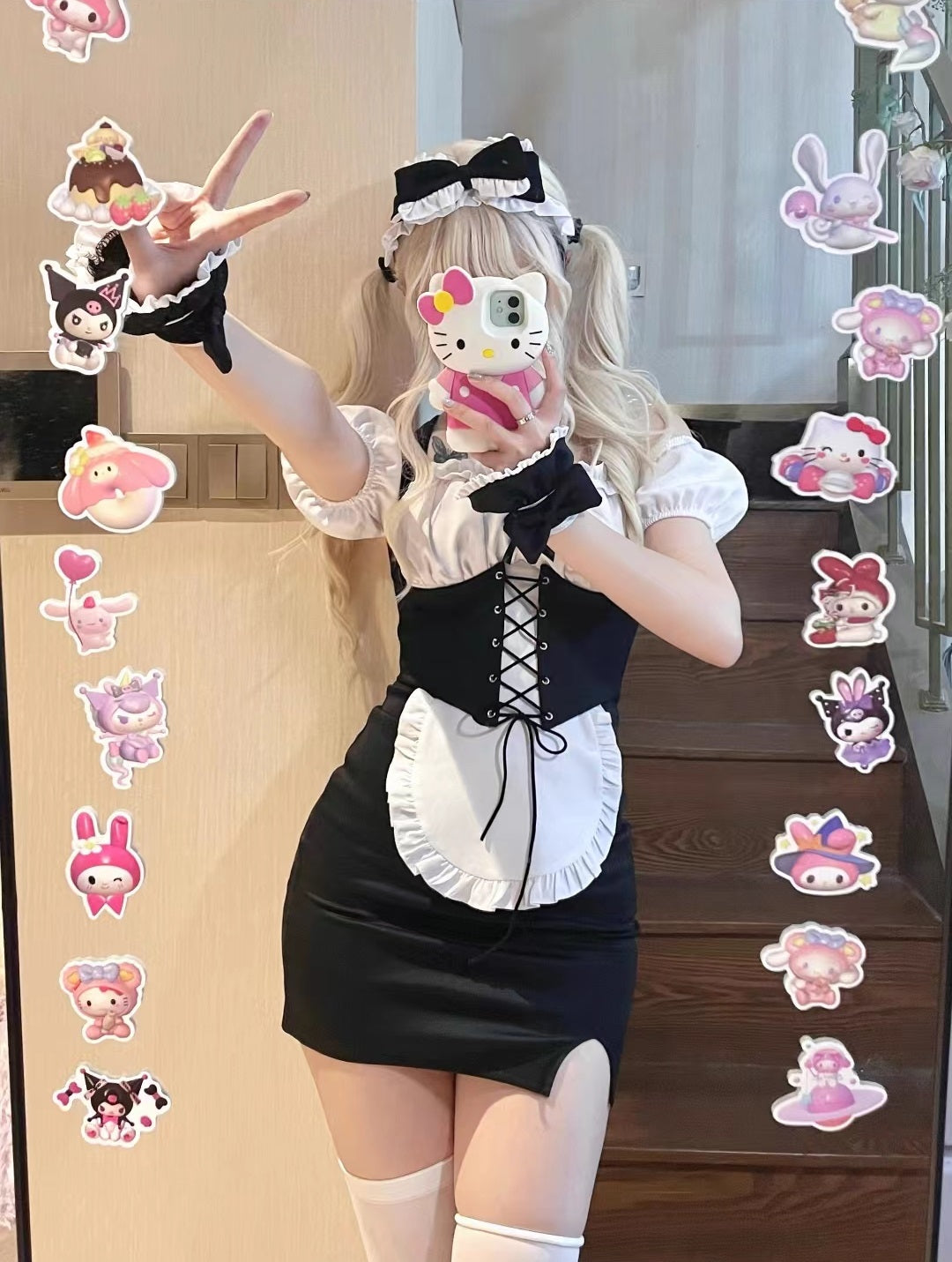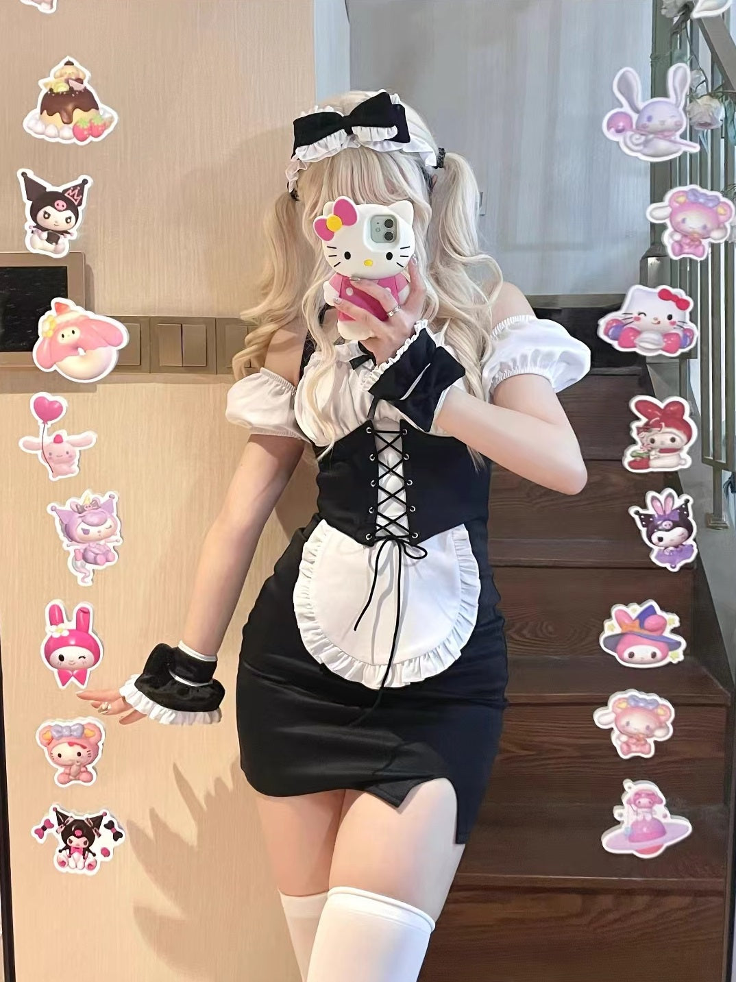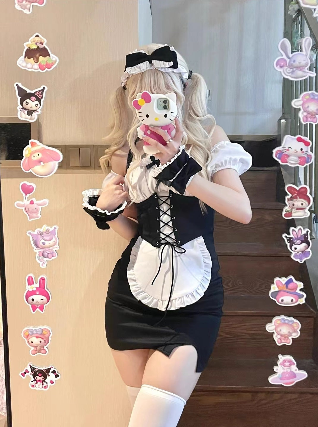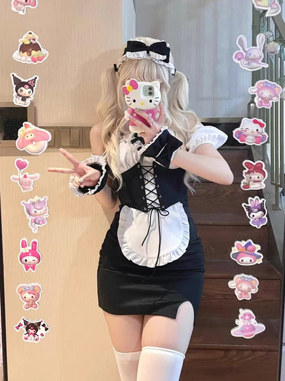 Serendipity Sexy Lace Corset Black White Cosplay Maid Dress