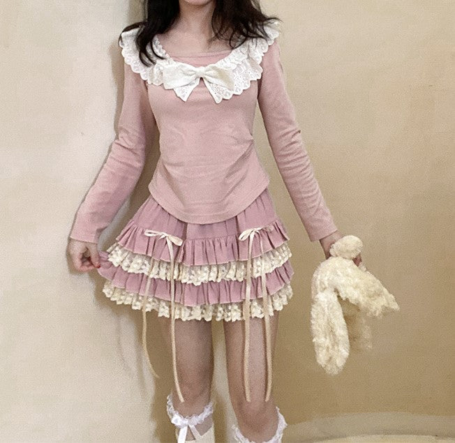 Soft Lucy Candy Lolita Ballet Style Ruffled Pink Mini Skirt