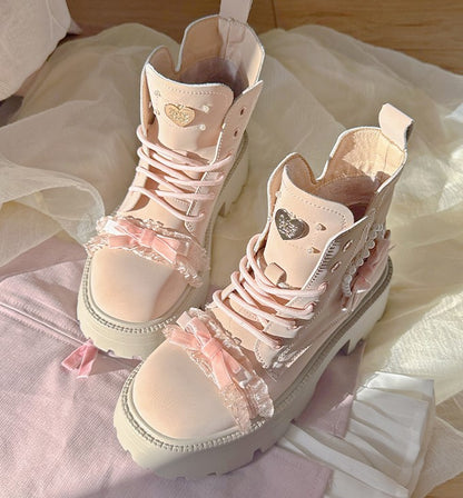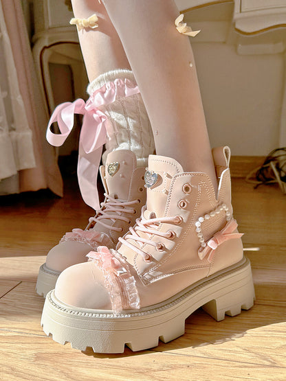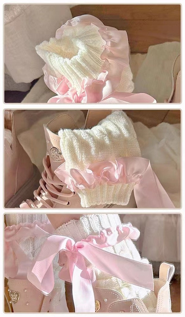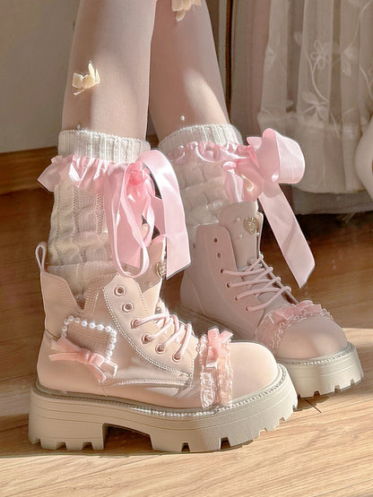 Pinky Sweet Knight Bow Pearl Light Pink Winter Snow Boots Shoes