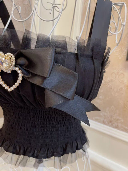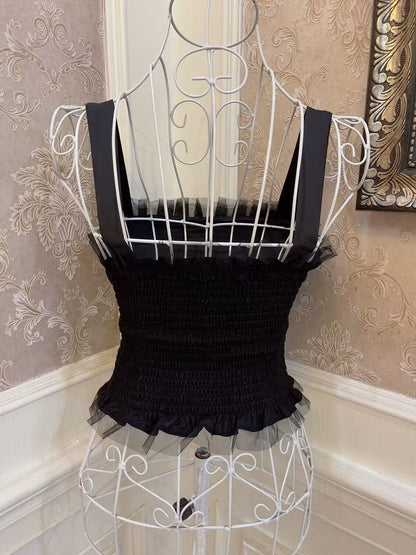 Sweetheart Princess Balletcore Organza Black White Camisole Top