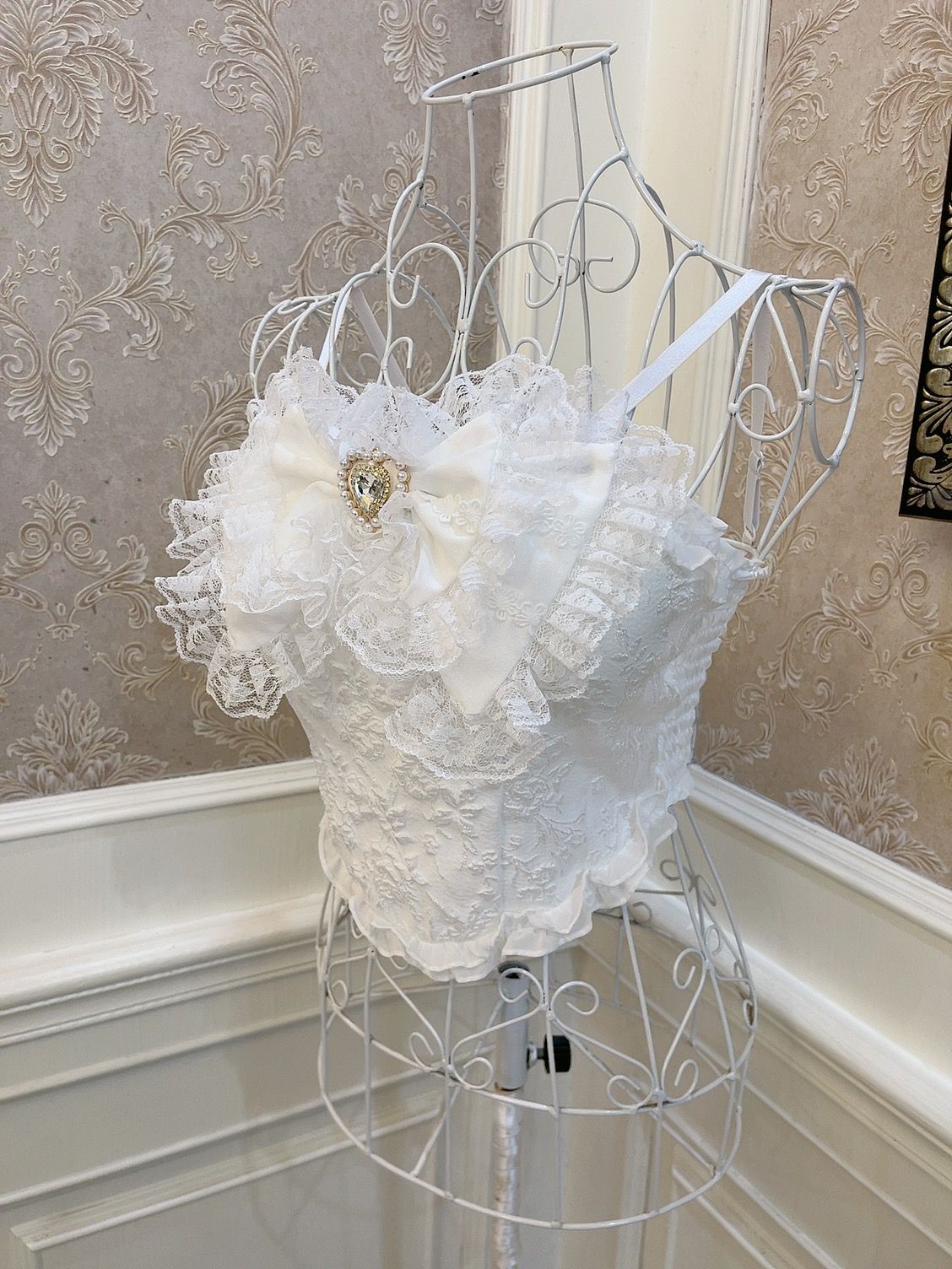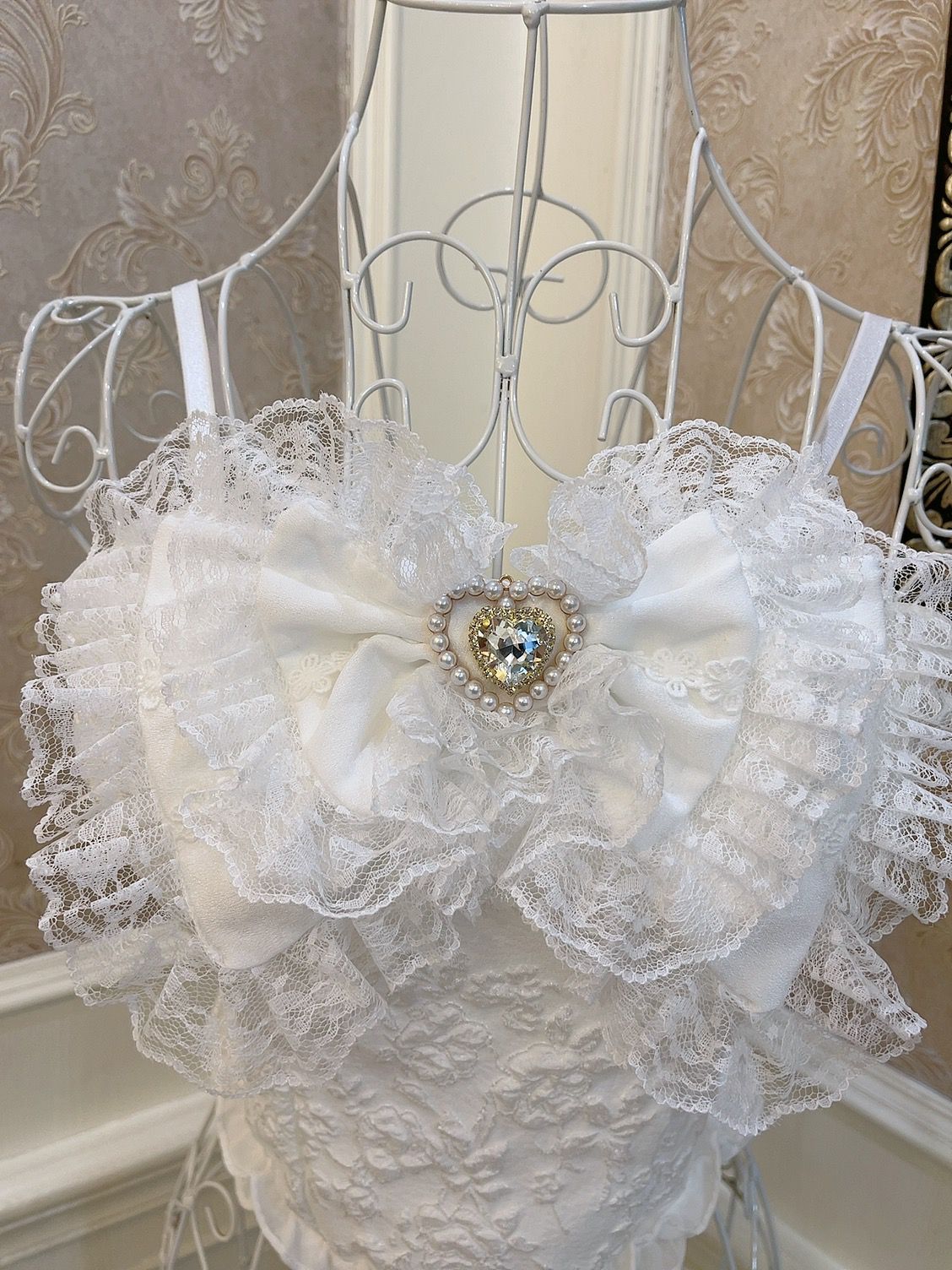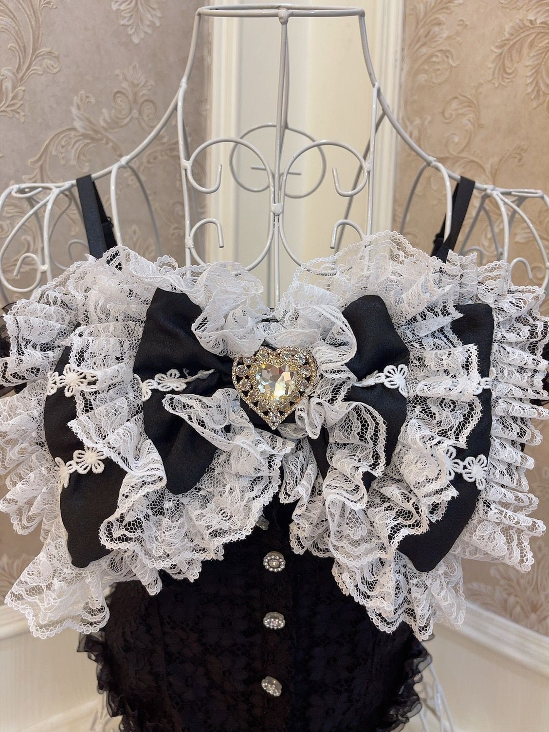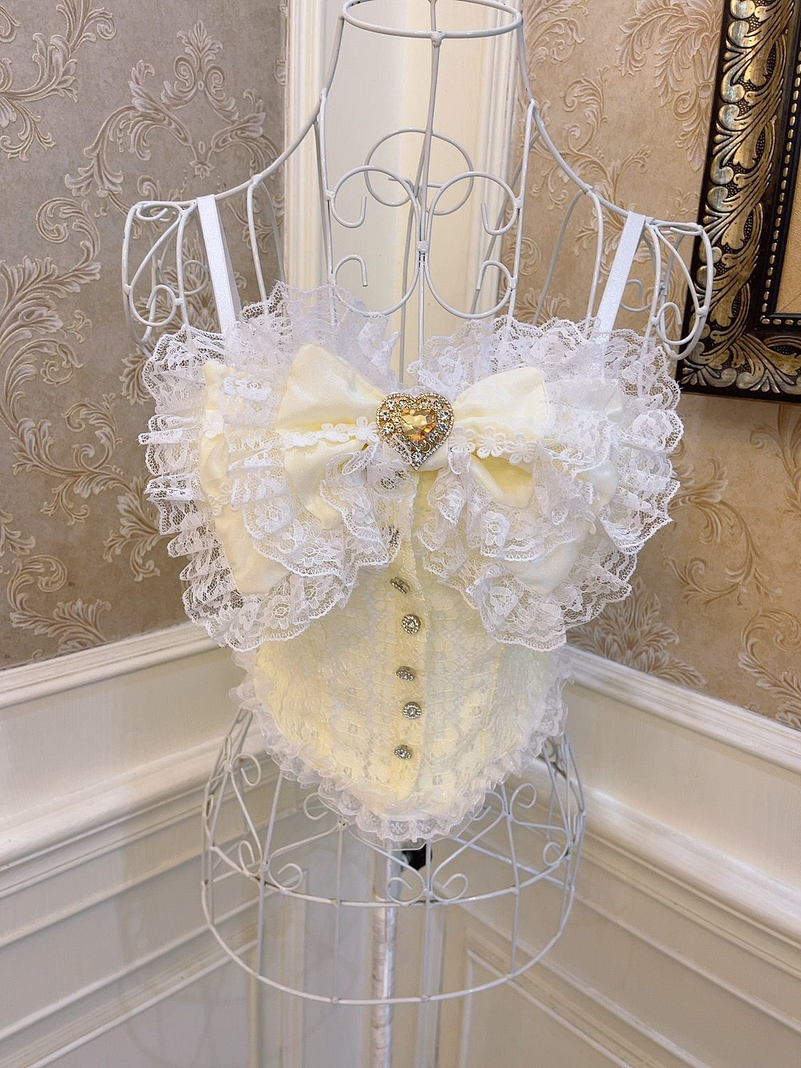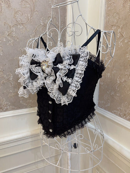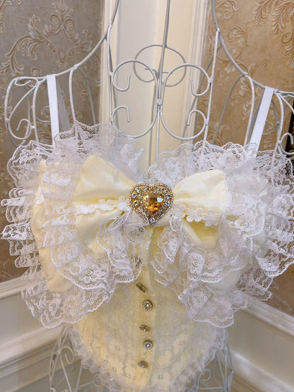 Sweetheart Princess Elegant Lace Heart Diamond Bow Black White Pink Yellow Camisole