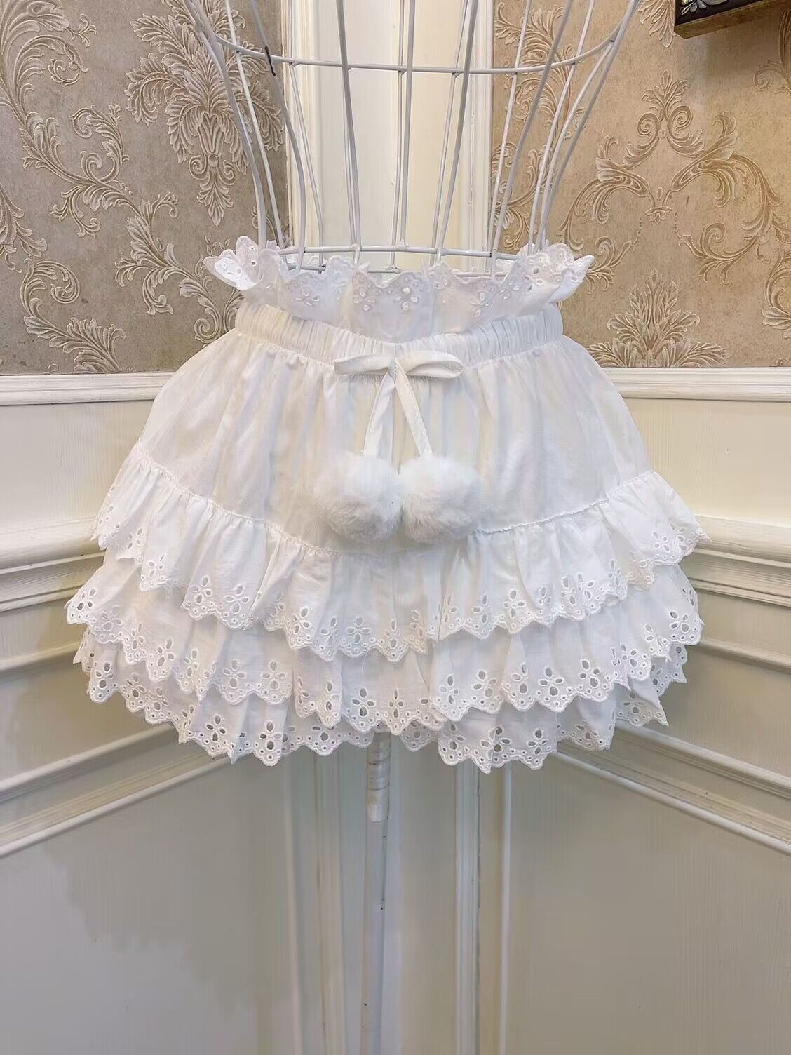 Sweetheart Princess Fluffy Snowball Bow Sexy Pink & White Gathered Mini Skirt Shorts Bloomers
