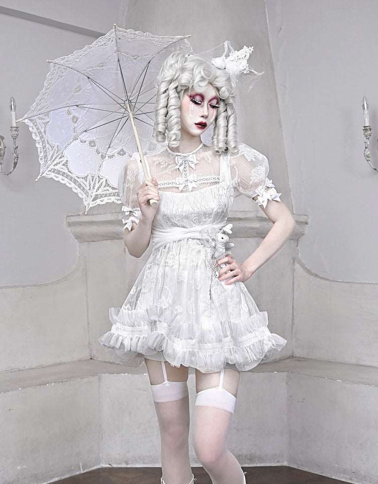 Blood Supply The White Doll Goth Bunny Chiffon High Waist Puff Sleeve Dress