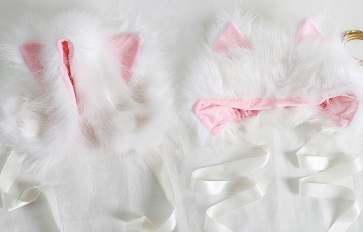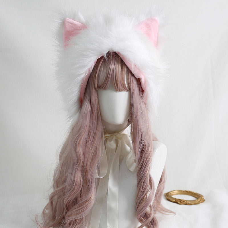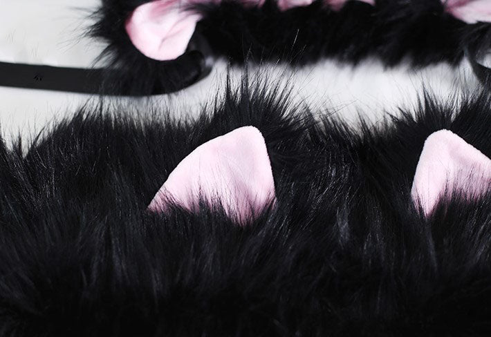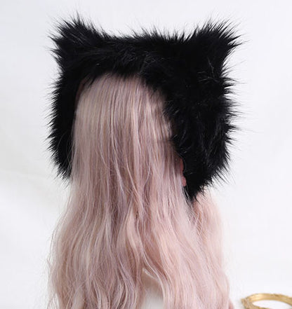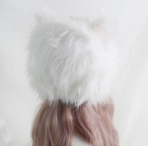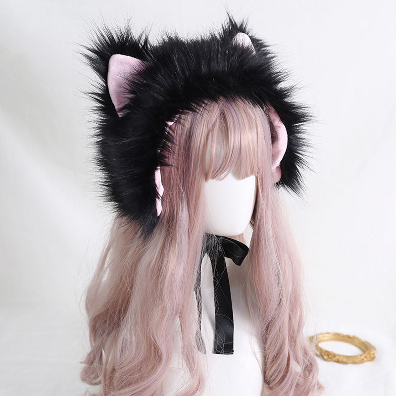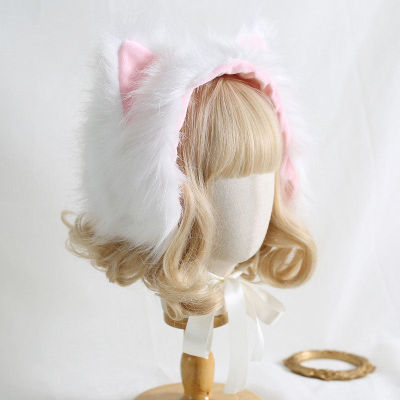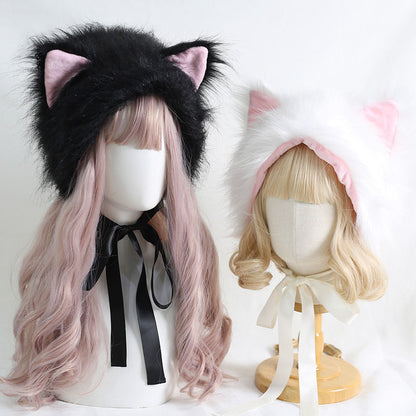 Winter Lolita White & Black Cat Ears Cute Handmade Fur Hats Headband