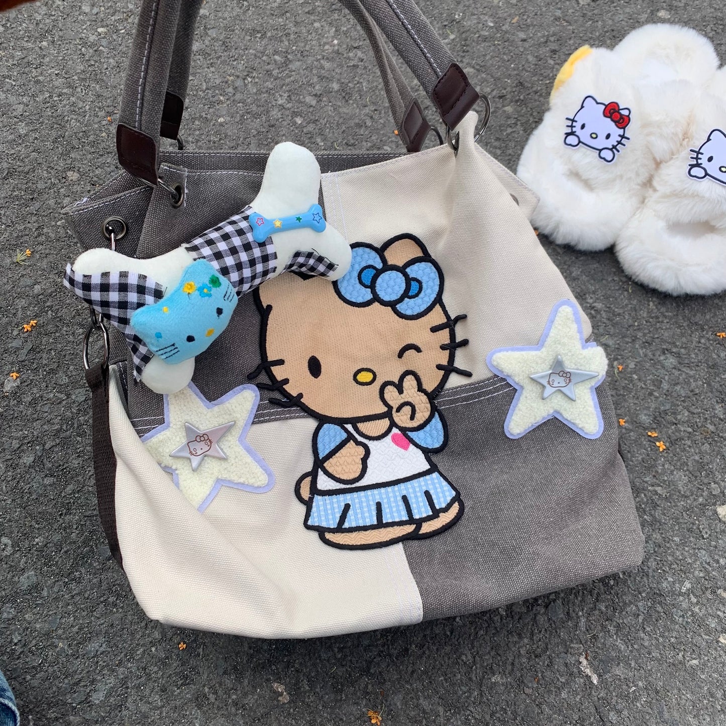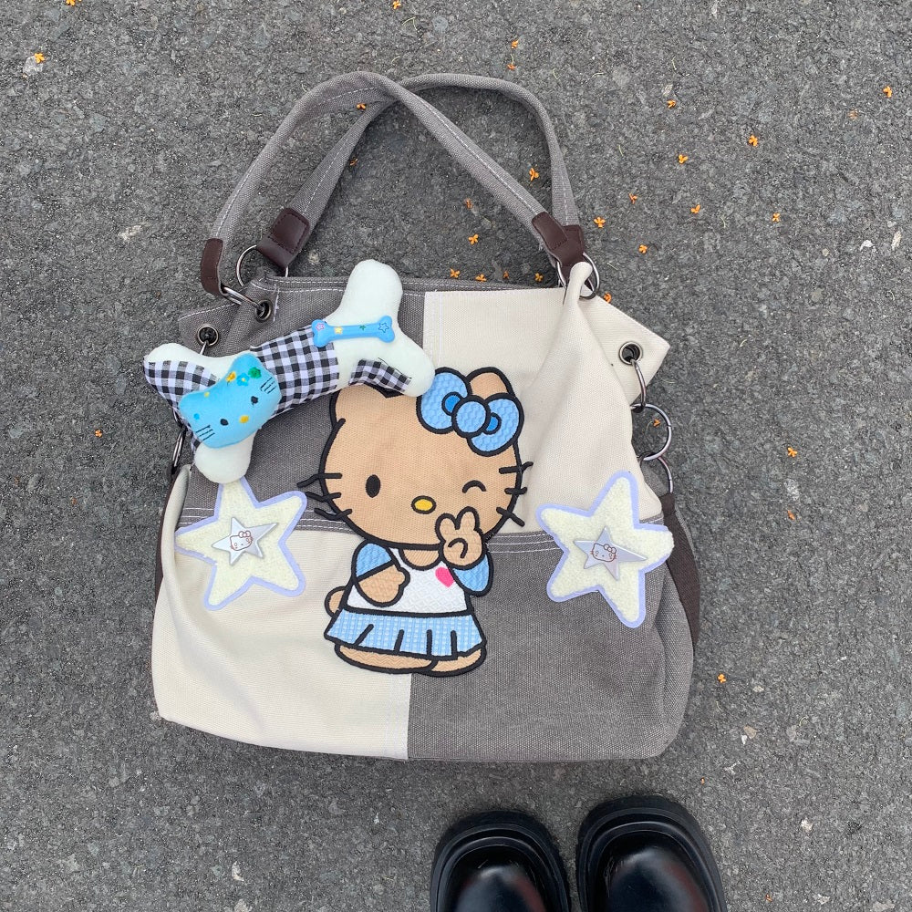 Y2K Black Brown Skin Kitty Shoulder Crossbody Messenger Bag