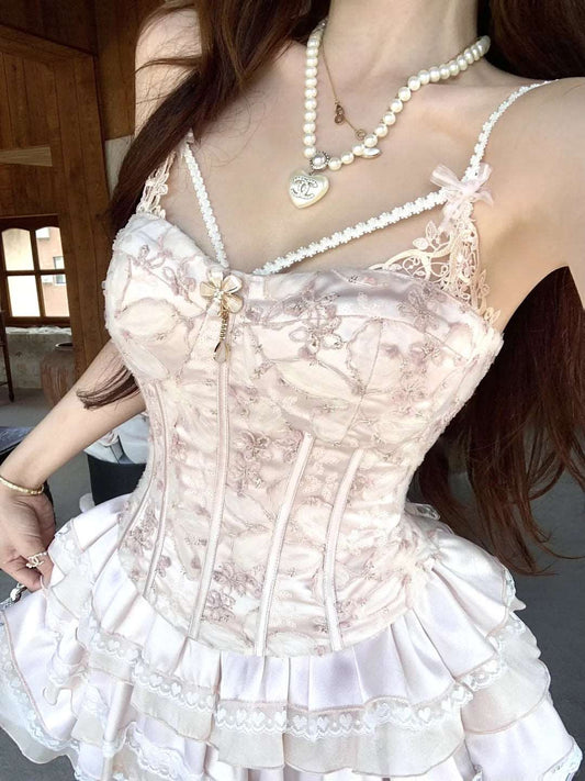 Acacia White Jade Pink Corset & Long Skirt Two Piece Set