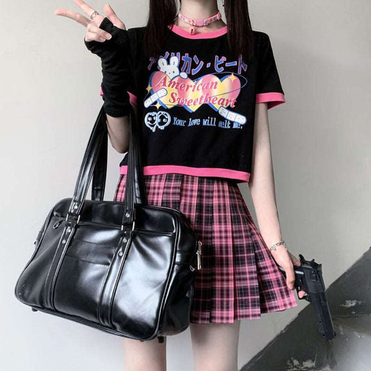 American Sweetheart Bandaid Bunny Streetwear Y2K Print Black T-shirt Tees Top