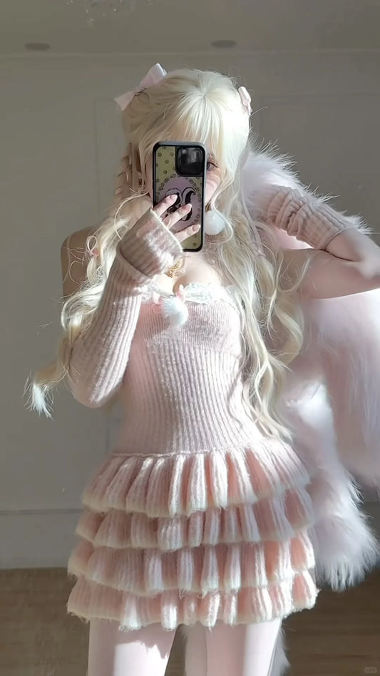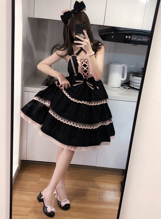 Sugar Girl First Love Sweet Ribbon Lace Strap Dress
