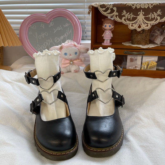 Sweet Heart Shaped Buckle Mary Jane Shoes