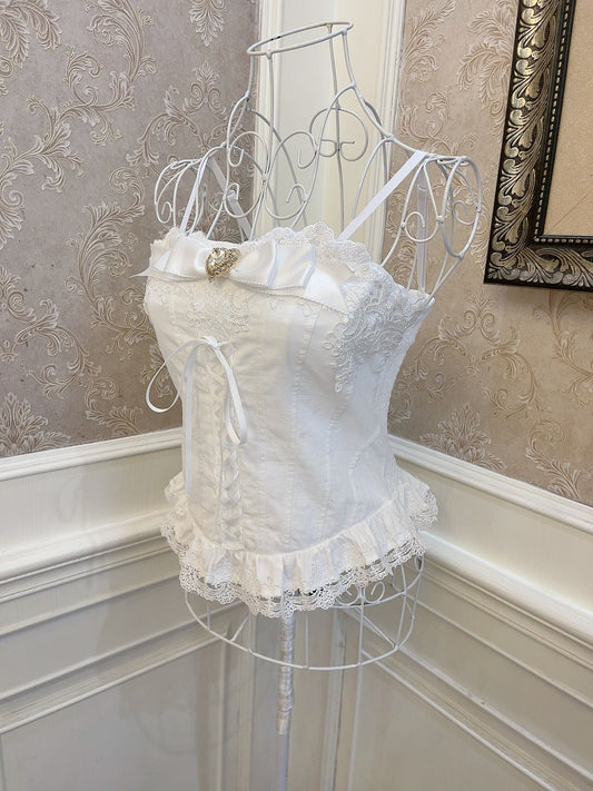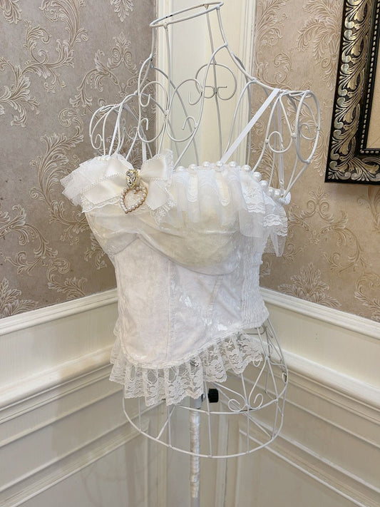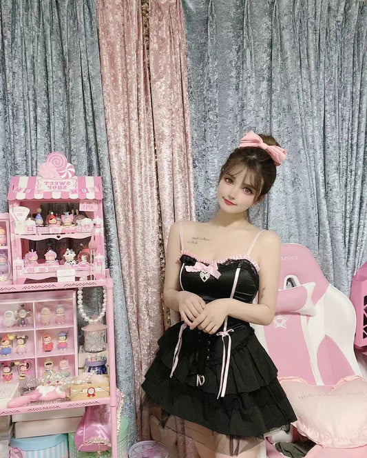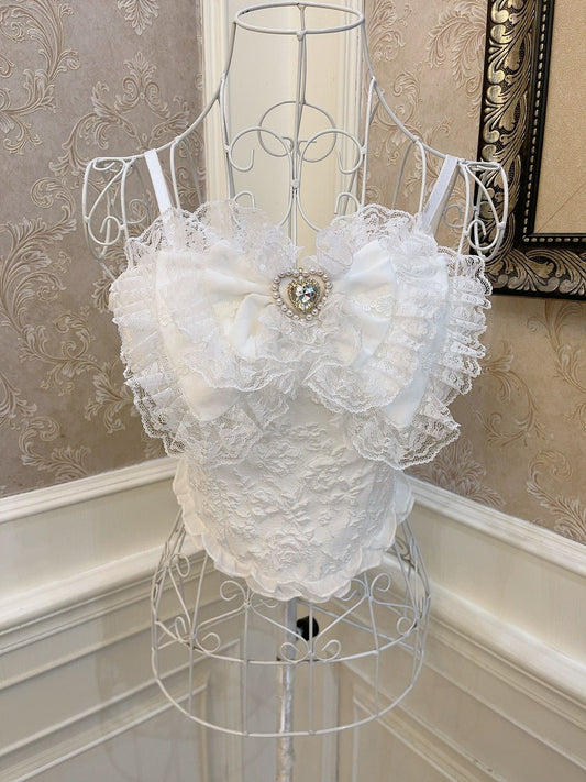 Sweetheart Princess Elegant Lace Heart Diamond Bow Black White Pink Yellow Camisole