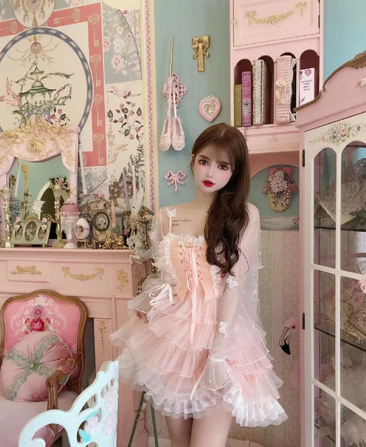 Sweetheart Princess Fairy Strap Cake Peach Pink Dress