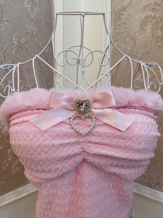 Sweetheart Princess Sweet Plush Edge Pink Strap Tank Top