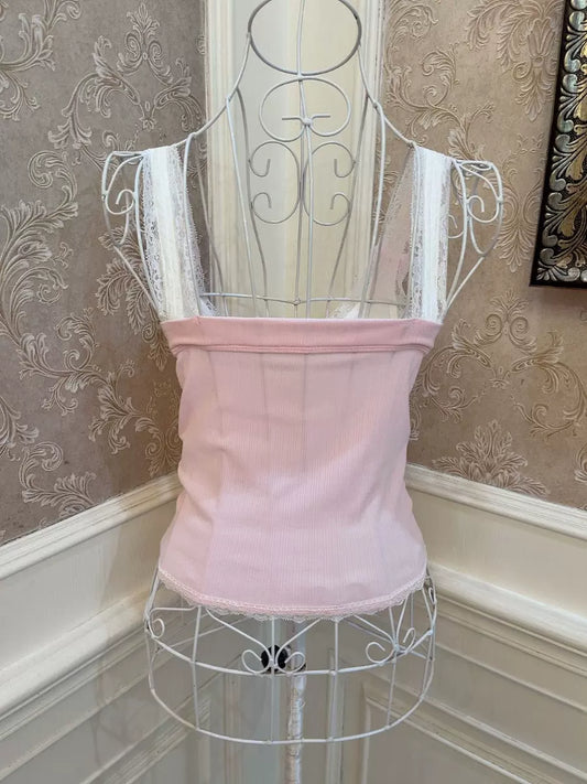 Sweetheart Princess Vintage Coquette Pink Lace Strap Tank Top Camisole