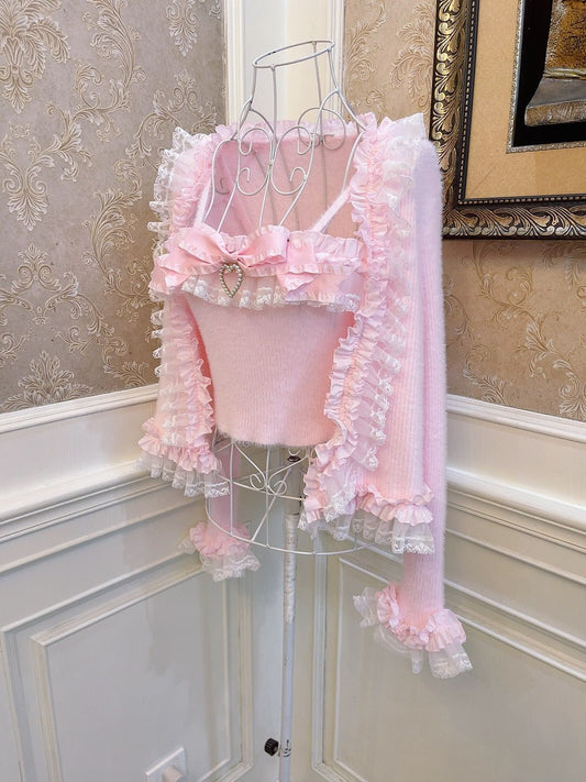 Sweetheart Princess Vintage Pastel Pink Camisole Top & Cardigan Two Piece Set