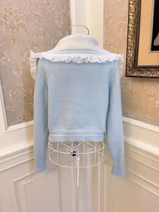 Sweetheart Princess Winter Cute Cinnamon Dog Blue Knit Sailor Collar Lace Sweater Cardigan