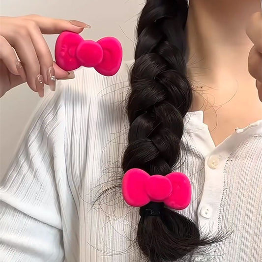 Pink Red Velvet Kitty Bow Hair Clips