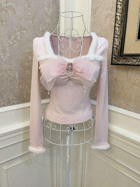 Serendipity Snow Romance Pink Sweater Coat Skirt Three Piece Set
