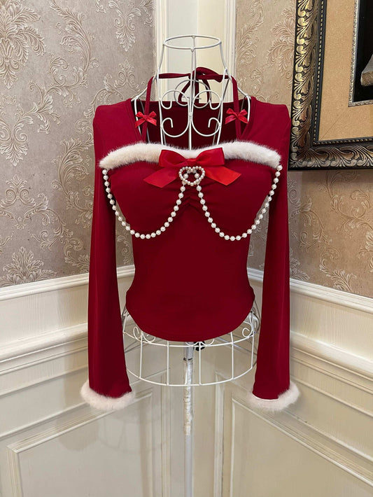 Christmas Carol New Years Red Dress Cape Two Piece Set