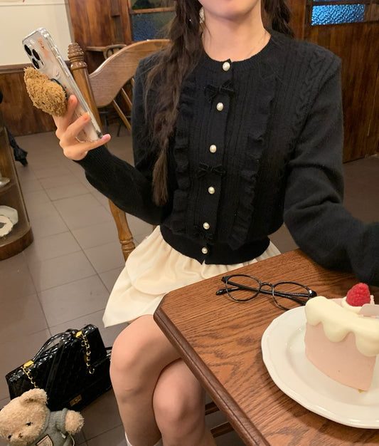 Coquette Princess Autumn Lace Bow Knit Black White Sweater