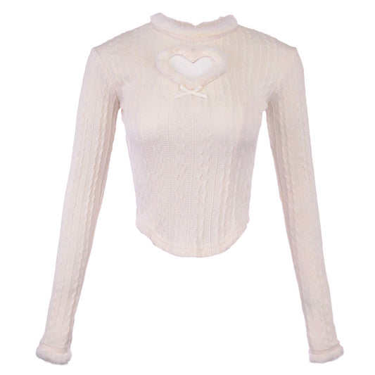 Cute Sexy White Striped Heart Fur Turtle Neck Plush Sweater