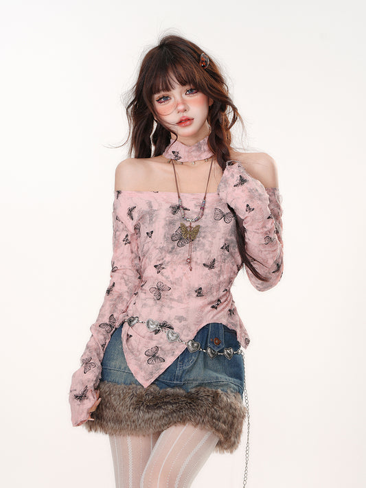 Crazy Girl Wishing Rabbit Pink Black Red Sweater
