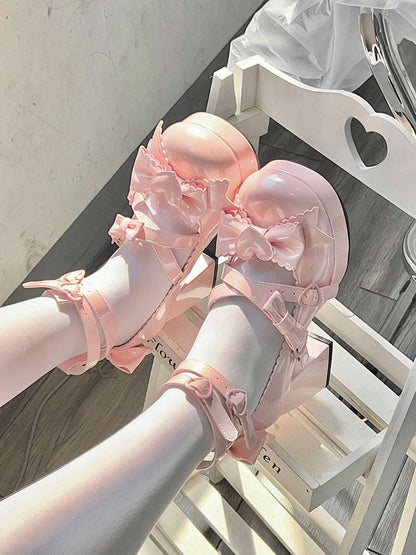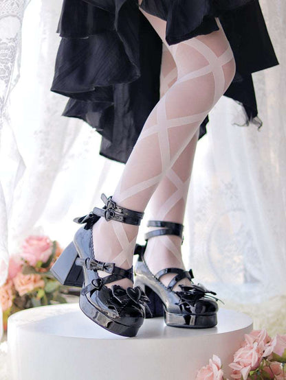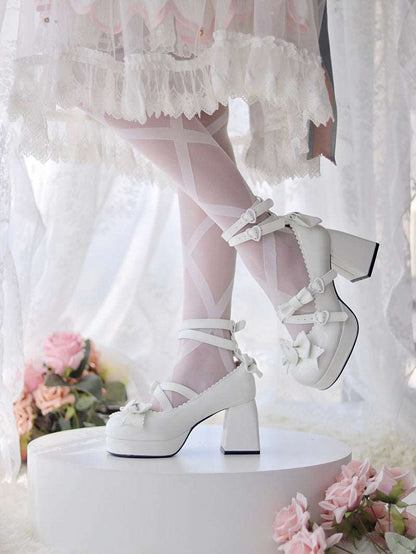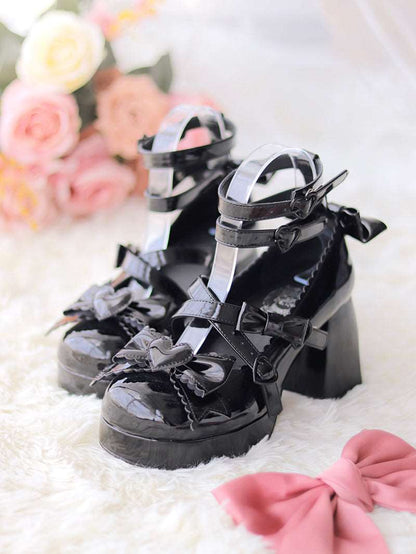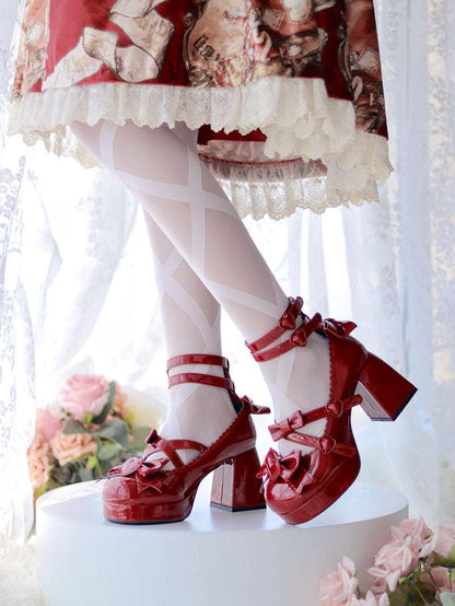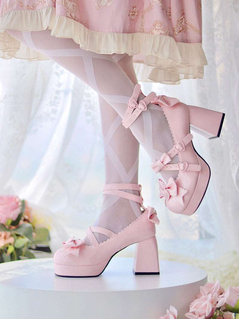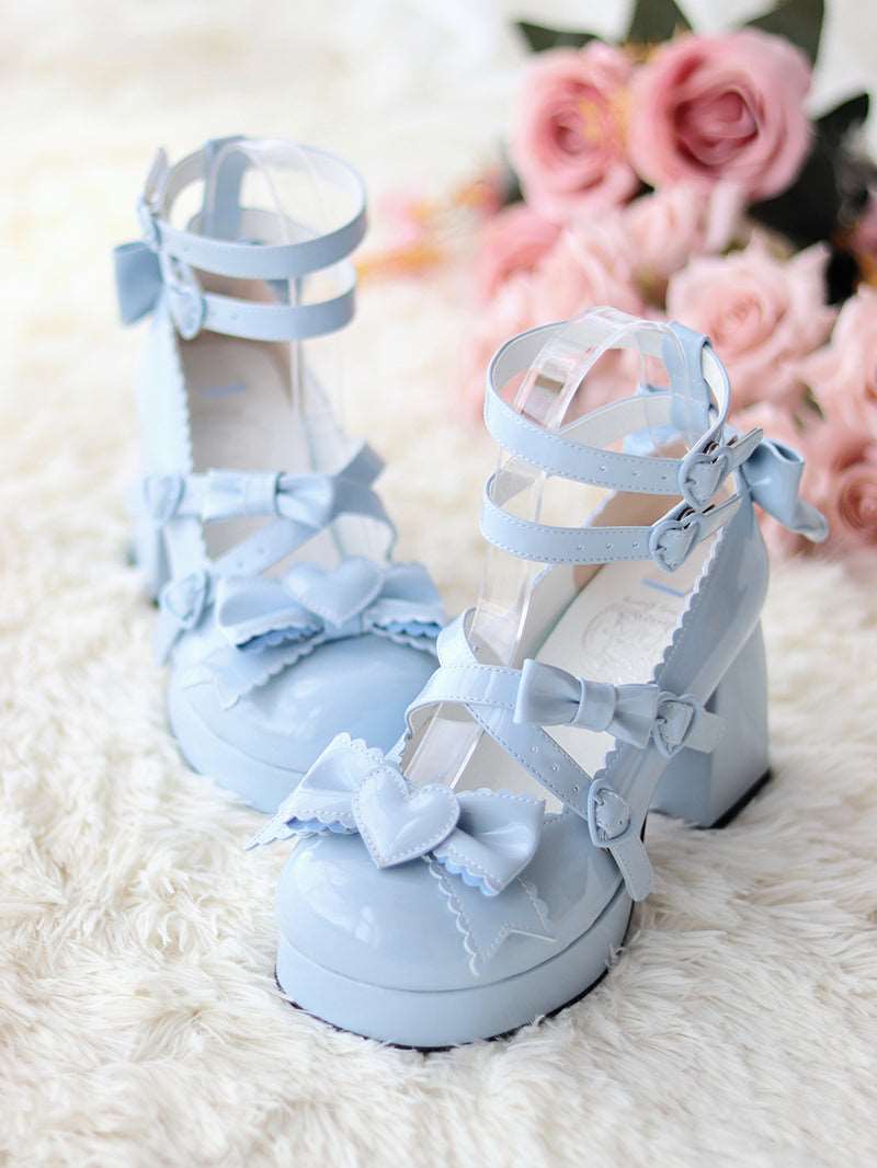 Beauty Bunny Midsummer Heart Knot Princess Blue Pink White Black Red Lolita High Heels Shoes