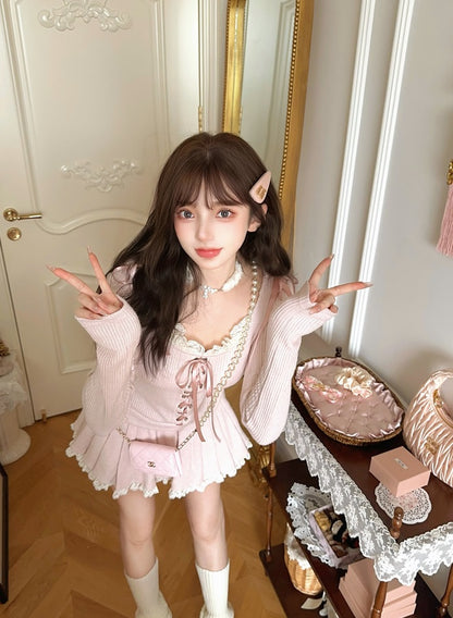 Bonbon Salty Sweet Pink Knit Hoodie & Skirt Two Piece Set